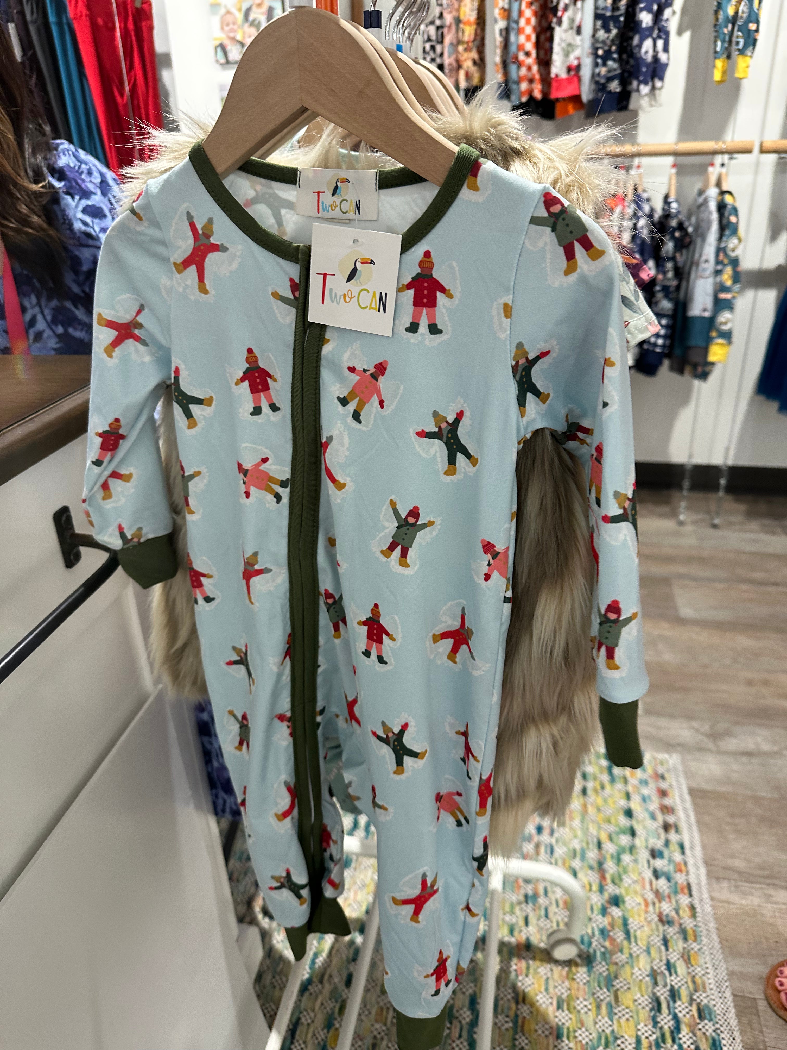 • Snow angel print full of wintry whimsy