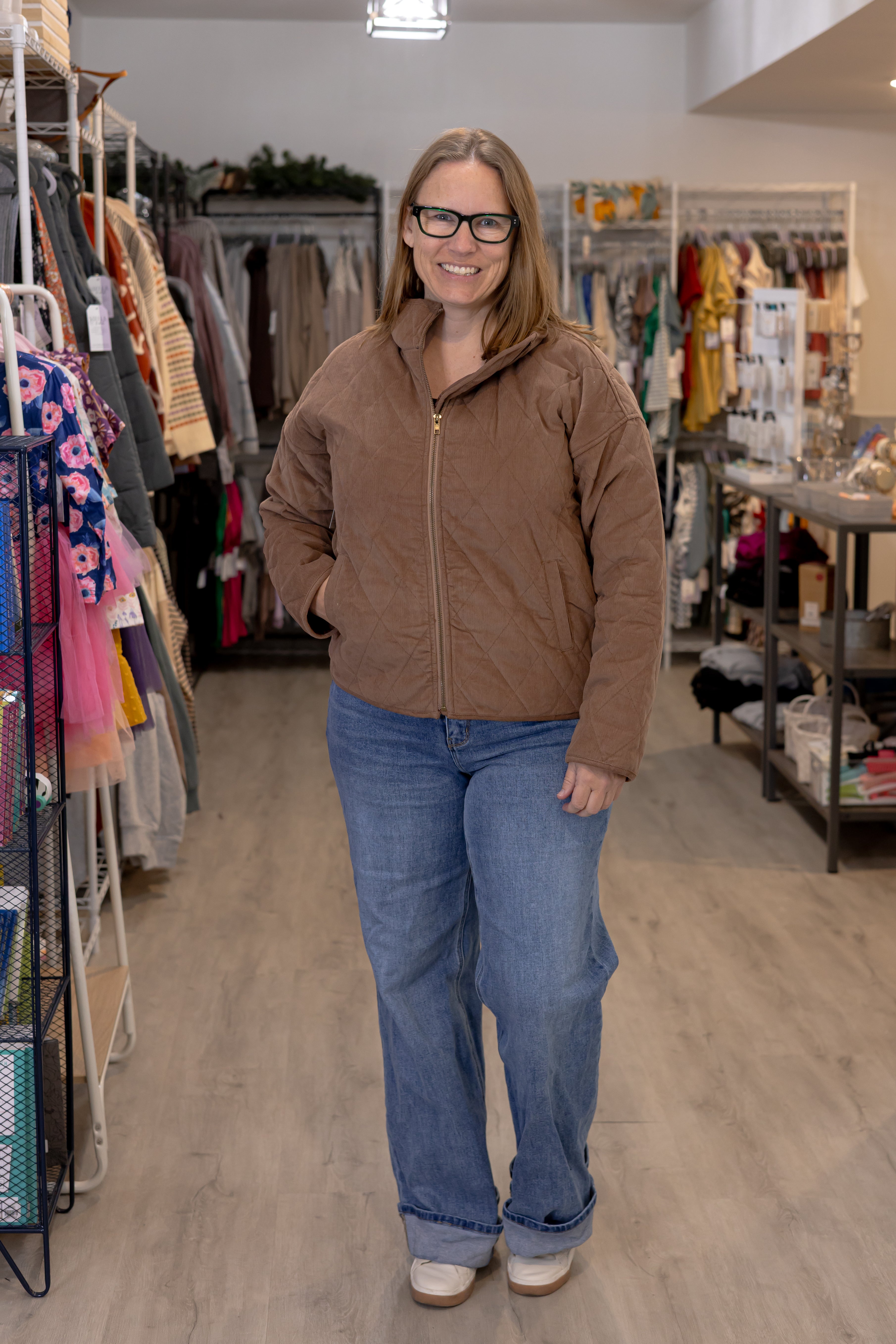Cozy with a touch of vintage charm, the Golden Hour Quilted Cord Jacket is your go-to for layering in style. Made from soft camel-hued corduroy with diamond quilting throughout, this piece blends warmth and texture in the best possible way. The relaxed fit makes it easy to throw on and go—while still looking effortlessly pulled together.