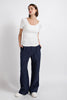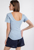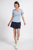 Made with a comfy stretch blend of 95% cotton and 5% spandex, it’s the kind of top that works solo or layered, dressed up or down. Pair it with high-rise denim, soft shorts, or your favorite joggers—it’s a grab-and-go staple with a touch of attitude.
