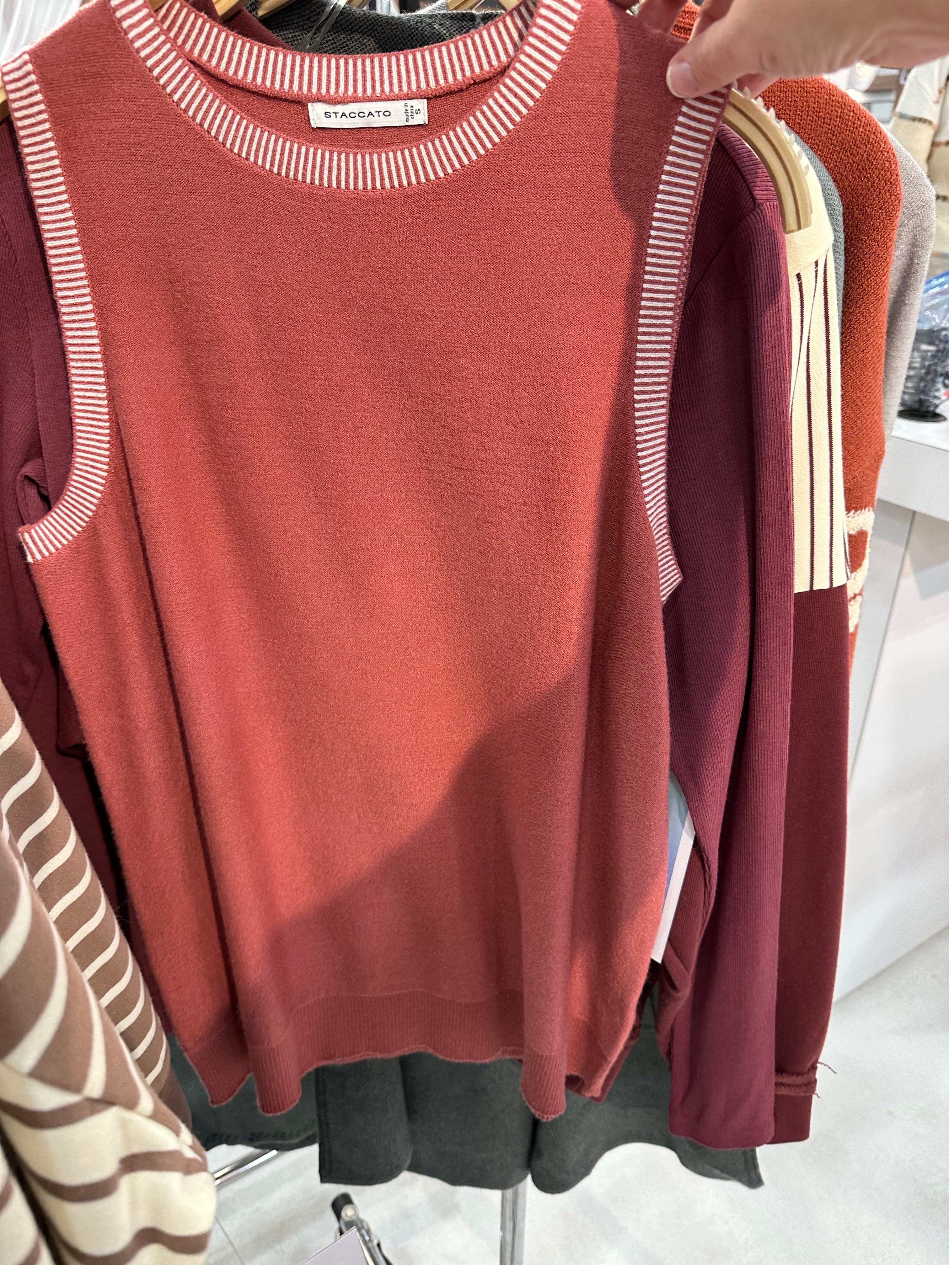 Marsala Contrast Neck Sleeveless Crew Neck Sweater