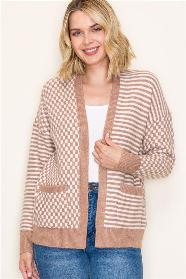Bold, cozy, and made to stand out. The Checkmate Striped Cardigan brings playful pattern to chilly-day layering with a mix of checkerboard and stripes in a soft, open-front silhouette. With roomy front pockets and a relaxed fit, it’s the kind of piece that pulls together any outfit—while keeping you wrapped in comfort.