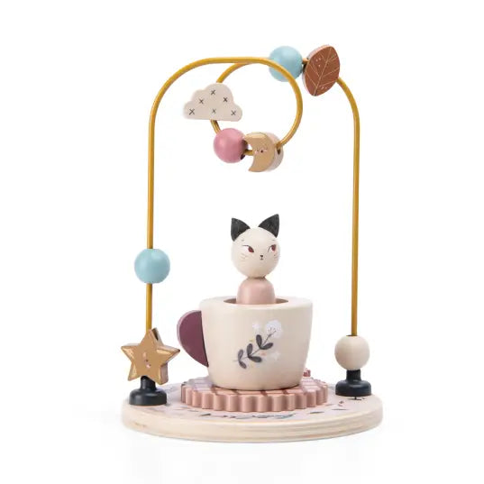 Illustrated wooden manipulative game from the After the Rain collection. Watch the cup spin and observe its character as you operate the gear set. The set also includes a bead circuit.